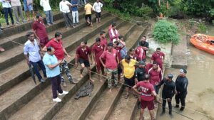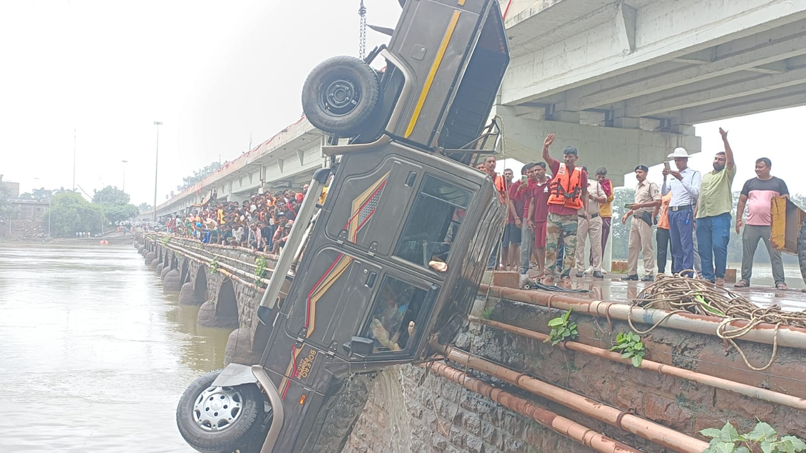 दुर्ग नगर निगम एवं पुलगांव थाना क्षेत्र के अंतर्गत देर रात्रि करीब एक बजे एक कार नदी में डूब जाने कि सूचना किसी ने SDRF के टीम को सूचना दी गई तत्पश्चात SDRF के टीम द्वारा आज सुबह करीब चार बजे से खोजबीन शुरू कि गई करीब दस बजे नदी से कार बरामद किया गया कार को नदी से बाहर निकालने पर पता चला कि कार में चार लोग सवार थे।