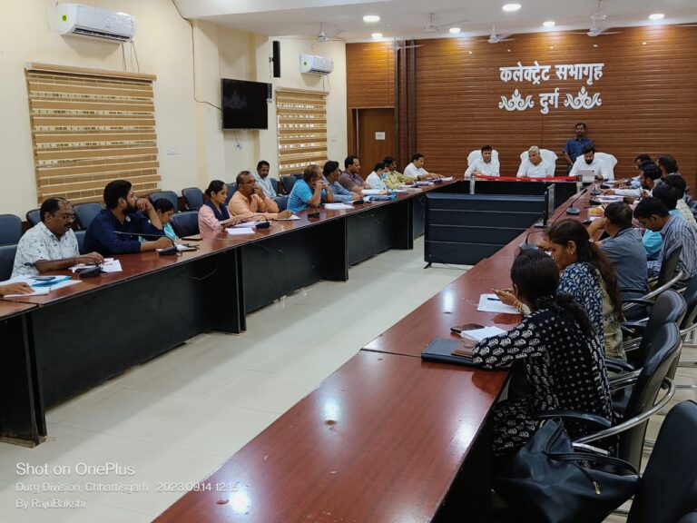 दुर्ग शहर / 14 सितंबर/आज दुर्ग कलेक्ट्रेट सभागृह में विधायक अरुण वोरा ने दुर्ग कलेक्टर पुष्पेंद्र मीना,महापौर धीरज बाकलीवाल एवं आयुक्त लोकेश चंद्राकर के उपस्थिति में निगम अधिकारियों की बैठक ली । विधायक वोरा में शहर में चल रहे विकास कार्यों की समीक्षा की एवं विकास कार्यों में लापरवाही न करने की बात कही ।