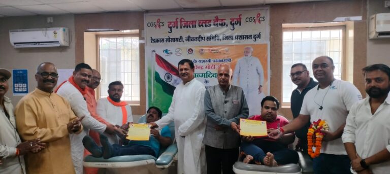 और भारतीय जनता युवा मोर्चा जिला अध्यक्ष जीत यादव के सहयोग से दुर्ग जिला शासकीय अस्पताल के ब्लड बैंक में आमजनों एवं युवाओं ने रक्तदान में बढ़-चढ़कर हिस्सा लिया, कुल 56 यूनिट रक्तदान किया गया।