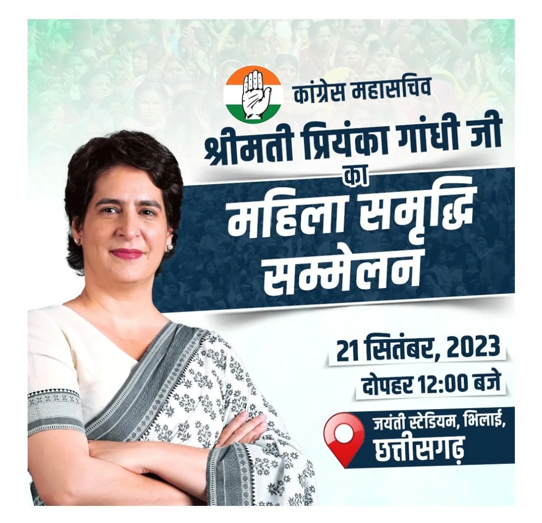 कार्यक्रम में विशिष्ट अतिथि श्रीमती प्रियंका गांधी और पूर्व केन्द्रीय मंत्री सुश्री कु. शैलजा होंगी। कार्यक्रम की अध्यक्षता उप मुख्यमंत्री टी.एस. सिंहदेव करेंगे। महिला समृद्धि सम्मेलन दोपहर 12 बजे प्रारंभ होगा।