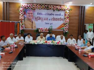 भूमिपूजन कार्यों में नगर पालिक निगम दुर्ग अंतर्गत 5 करोड़ 56 लाख रूपए लागत से शहर के बाएं क्षेत्र में पाईप लाईन विस्तार, 5 करोड़ 96 लाख 42 हजार रूपए लागत से शहर के विभिन्न क्षेत्रों में 16 नग नाला निर्माण कार्य, 3 करोड़ 26 लाख 70 हजार रूपए लागत से 3 मार्गों का चौड़ीकरण एवं उन्नयन कार्य,