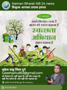 दुर्ग/ 1 अक्टूबर।स्वच्छता पखवाडा स्वच्छता ही सेवा 2023 अभियान अंतर्गत शहरी कार्य मंत्रालय भारत सरकार के आदेशानुसार आज नगर पालिक निगम द्वारा स्वच्छता ही सेवा एक तारीख एक घंटा एक साथ स्वच्छता अभियान चलाया गया।