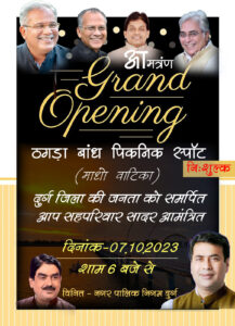 बता दे कि सात अक्टूबर को शाम छह बजे से भव्य स्वागत आम जनता सह परिवार के साथ यहां निशुल्क प्रवेश कर बांध के सौंदर्यीकरण का आनंद उठा सकते हैं! शहर वासियों को विधायक अरुण वोरा के प्रयासों से माधव वाटिका(ठगड़ा बांध) के रूप में एक नए पिकनिक स्पॉट की सौगात मिली है।