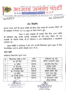 आजाद जनता पार्टी का जन अधिकार पत्र व प्रत्याशियों की पहली सूची हुई जारी