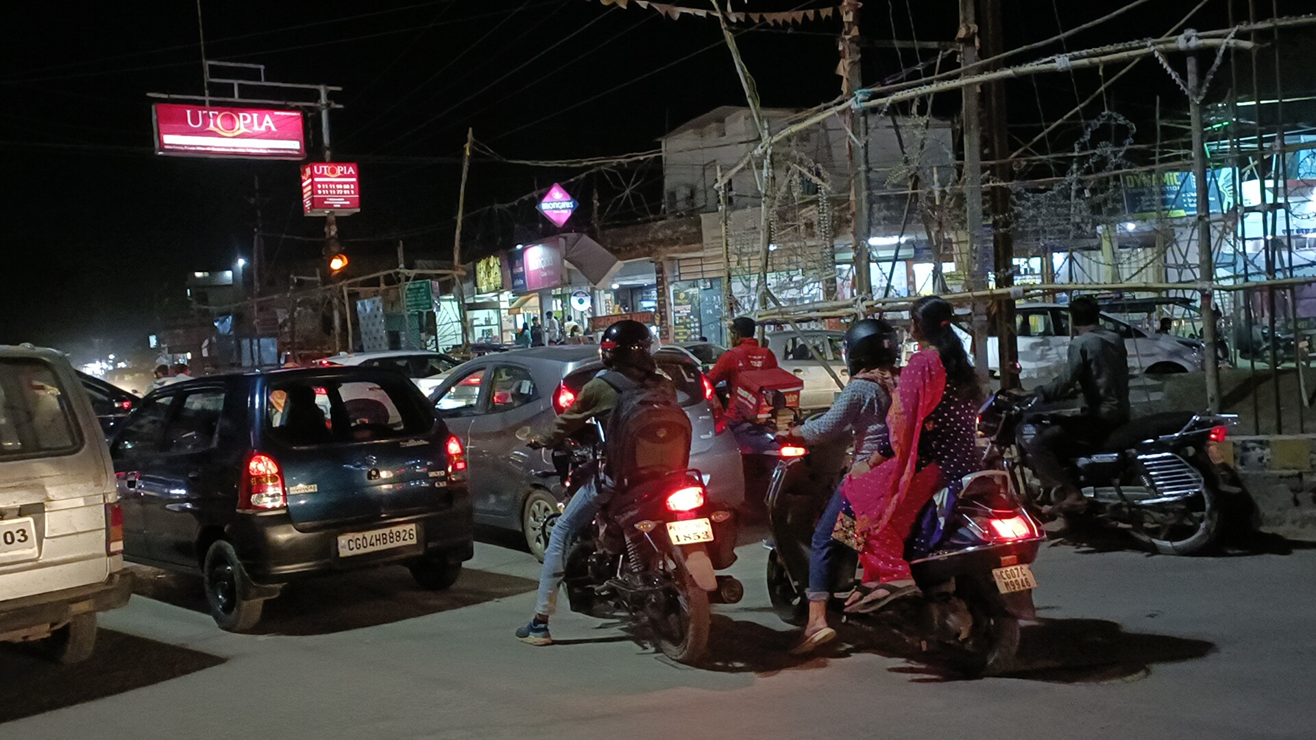 दुर्ग शहर के महाराजा चौक में सुबह से लेकर रात्रि करीब नौ बजे तक रोज जाम कि स्थिति निर्मित रहती हैं। क्योंकि यहां पर जाम इसलिए होती है। क्योंकि यहां चारों दिशाओं से छोटी बड़ी वाहनों एवं नो एंट्री वाहनों का बेधड़क आना-जाना लगा रहता है।