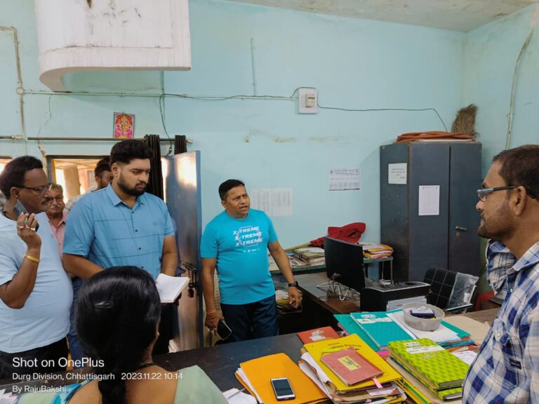 दुर्ग/ 22 नवंबर/नगर पालिक निगम विधानसभा निर्वाचन का मतदान संपन्न होने के बाद नगर निगम में जनहित के कार्यो को गति पर लाने के लिए आज आयुक्त लोकेश चन्द्राकर ने ऑफिस खुलते ही उपस्थित पंजी का निरीक्षण किया,