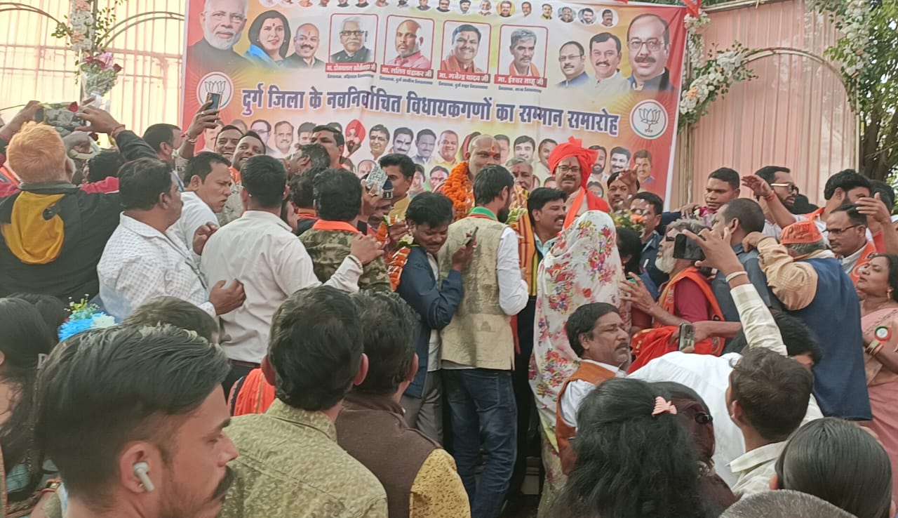 वहीं भिलाई अध्यक्ष ब्रिजेश ब्रीचपुरिया सहित अनेकों दिग्गज नेताओं उपस्थित रहे यह विधायक सम्मान समारोह पहला कार्यक्रम सुत्रो के अनुसार पता चला कि दुर्ग जिला अध्यक्ष जितेन्द्र वर्मा के मार्गदर्शन एवं नेतृत्व में कि गई जो पुरी तरह से क्षेत्र के लोगों एवं भाजपाइयों के लिए फैल साबित हुई अभी शपथ ग्रहण समारोह भी नहीं हुआ है और न ही अभी इनकी सरकार भी नहीं बनी है और अभी से ही आपस में मनमोटाव एवं आमंत्रण को लेकर भेद-भाव करते दिखाई दिए