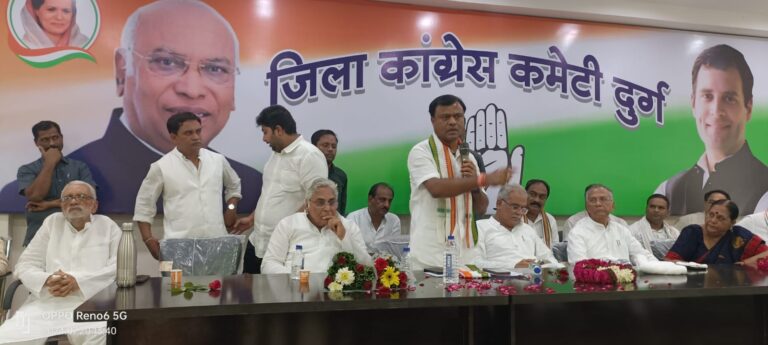 दुर्ग शहर स्थित कांग्रेस भवन कार्यालय में कांग्रेस पार्टी के दिग्गज नेताओं एवं कार्यकर्ताओं द्वारा विधानसभा घेराव करने को लेकर बैठक आयोजित कि गई कार्यक्रम के मुख्यातिथि पूर्व मुख्यमंत्री भूपेश बघेल विशेष रूप से उपस्थित रहे कार्यक्रम कि शुरुआत दोपहर 12:00 बजे सम्पन्न होना था नहीं लेकिन नहीं हुआ