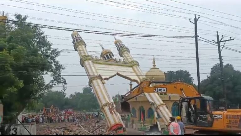 अवैध रूप से निर्मित दुकान, हाॅल, आफिस, चबुतरा, स्वागत द्वार एवं बाउण्ड्रीवाल को बेदखल किया गया।