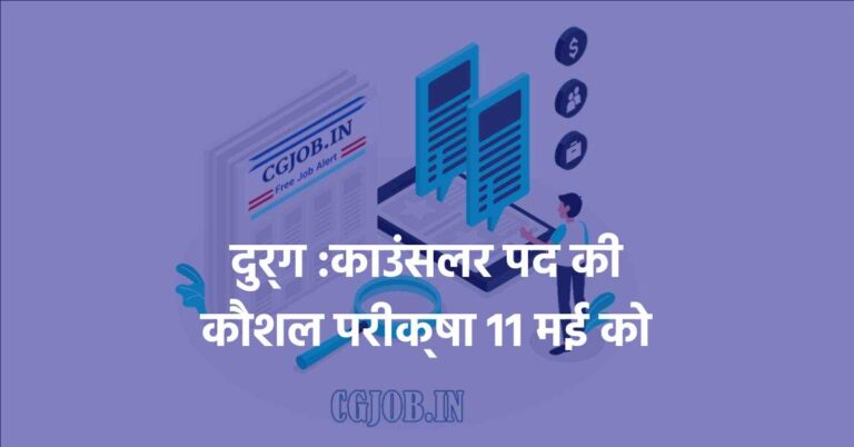 पद की कौशल परीक्षा 11 मई 2022 को आयोजित की जाएगी। कौशल परीक्षा हेतु पात्र अभ्यार्थी कोविड प्रोटोकॉल का पालन करते हुए पहचान पत्र के साथ प्रातः 10.30 बजे आई.पी.पी.-6 पांच बिल्डिंग दुर्ग में उपस्थित रहें।