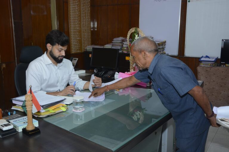 दुर्ग 04 जुलाई 2022/कलेक्टर श्री पुष्पेन्द्र कुमार मीणा ने ठीक सुबह 10ः00 बजे अपने चेंबर में दस्तक देकर कलेक्ट्रेट के अधिकारी एवं कर्मचारियों व अन्य लोगों के साथ भेंट मुलाकात की और समन्वय स्थापित करके सकरात्मक दिशा में कार्य करने की बात कही।