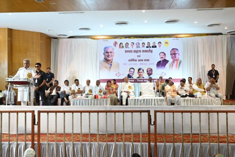 दुर्ग 10 जुलाई 2022/ जिला साहू संघ दुर्ग के नवनिर्वाचित एवं मनोनित पदाधिकारियों का शपथ ग्रहण समारोह एवं वार्षिक आम सभा कार्यक्रम में मुख्य अतिथि छत्तीसगढ़ के मुख्यमंत्री भूपेश बघेल एवं गृहमंत्री ताम्रध्वज साहू विशेष रूप से उपस्थित थें