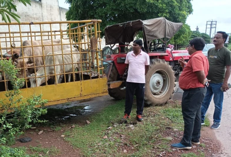निगम की अतिक्रमण टीम शहर में आवारा मवेशियों को पकड़ने घूमती रही। मवेशियों को पकड़कर गोठान भेजा। शुक्रवार को रायपुर नाका ओवरब्रिज, ग्रीन चौक,बोरसी मालवीय नगर चौक,राजेन्द्र पार्क चौक बायपास मार्ग सहित अन्य जगहों से मवेशियों को पकड़ा गया।