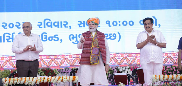 प्रधानमंत्री ने भुज में लगभग 4400 करोड़ रुपये की परियोजनाओं का उद्घाटन और शिलान्यास किया। प्रधानमंत्री ने सरदार सरोवर परियोजना की कच्छ शाखा नहर का भी उद्घाटन किया। नहर की कुल लंबाई लगभग 357 किमी है। नहर के एक हिस्से का प्रधानमंत्री ने 2017 में उद्घाटन किया था और शेष भाग का उद्घाटन अभी किया जा रहा है।