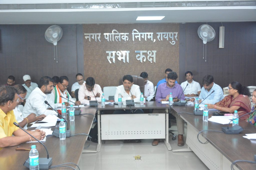 रायपुर – आज नगर पालिक निगम रायपुर के मुख्यालय भवन महात्मा गाॅधी सदन के तृतीय तल सभाकक्ष में महापौर एजाज ढेबर की अध्यक्षता एवं आयुक्त मयंक चतुर्वेदी, एमआईसी सदस्य श्रीमती अंजनी राधेष्याम विभार, श्रीमती द्रौपती हेमंत पटेल, सर्वश्री नागभूषण राव, सतनाम सिंह पनाग, सुन्दर लाल जोगी, रितेष त्रिपाठी, आकंशा तिवारी,