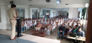 इसी प्रकार *पुलिस अधीक्षक दुर्ग के निर्देश पर यातायात पुलिस दुर्ग द्वारा चलाये जा रहे यातायात जागरूकता कार्यक्रम के तहत आज दिनांक को *चन्द्रा नर्सिग कॉलेज, पुष्पक नगर भिलाई में उपस्थित कुल-235 छात्र/छात्राएं एवं शिक्षकगण को श्री गुरजीत सिंह उप पुलिस अधीक्षक, (यातायात)_ के द्वारा यातायात नियमों के संबंध में विस्तृत जानकारी प्रदान की गई।