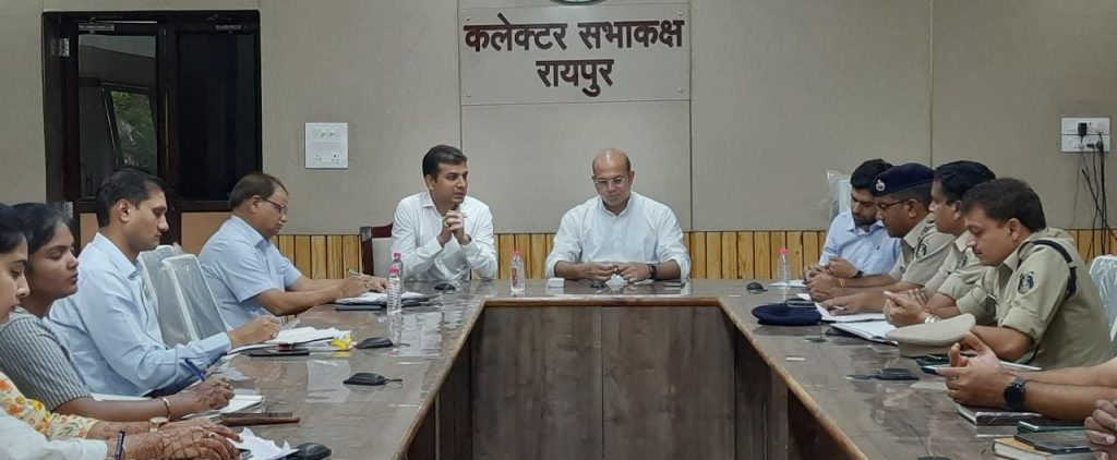 रायपुर 05 सितंबर 2022/ कलेक्टर डॉ.सर्वेश्वर नरेन्द्र भुरे और एस.एस.पी. श्री प्रशांत अग्रवाल ने आज यहां कलेक्टोरेट सभाकक्ष में जिले के कानून व्यवस्था की समीक्षा की। उन्होंने आने वाले दिनों में विभिन्न संगठनों द्वारा धरना, विरोध प्रदर्शन और रैली आदि की जानकारी अधिकारियों से ली।