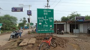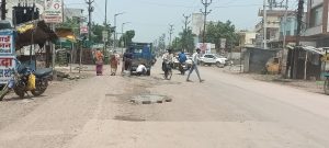 पोटिया कला के क्रांति चौक रोड़ के बीचों बीच गढ्ढे होने से दुर्घटना होने कि भय लगातार