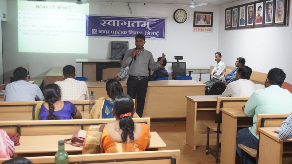 पीएमयू हरीश ठाकुर ने प्रोजेक्टर के माध्यम से उपस्थित सभी को नेशनल क्लीन एयर प्रोग्राम के विषय में विस्तार से जानकारी दी।