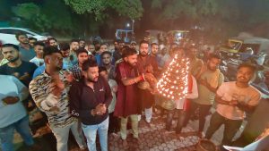जहां काफी भारी संख्या में राष्ट्रीय हिन्दू शक्ति संगठन के कार्यकर्ता एवं लोग इस महा आरती में शामिल हो रहे हैं बता दें कि आज भी आरती एवं प्रसाद वितरण किया गया