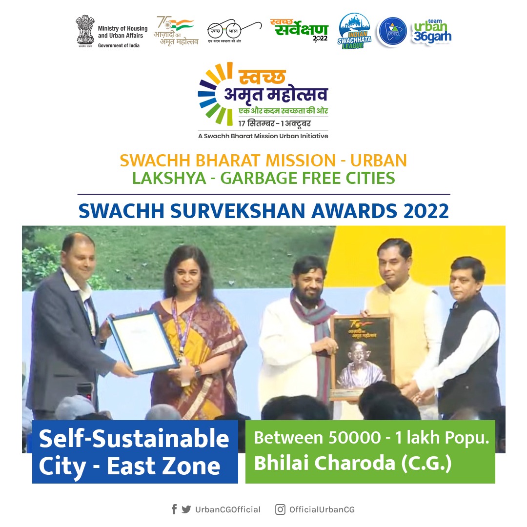 स्वच्छता सर्वेक्षण 2022 के नतीजे घोषित हो गए हैं। इसमें भिलाई – चरोदा नगर निगम में बेहतर प्रदर्शन के साथ बेस्ट परफॉर्मिंग सिटी इन स्वच्छ सर्वेक्षण की केटेगरी में देश में एक से तीन लाख की आबादी वाले निकायों में दूसरा स्थान हासिल किया है।